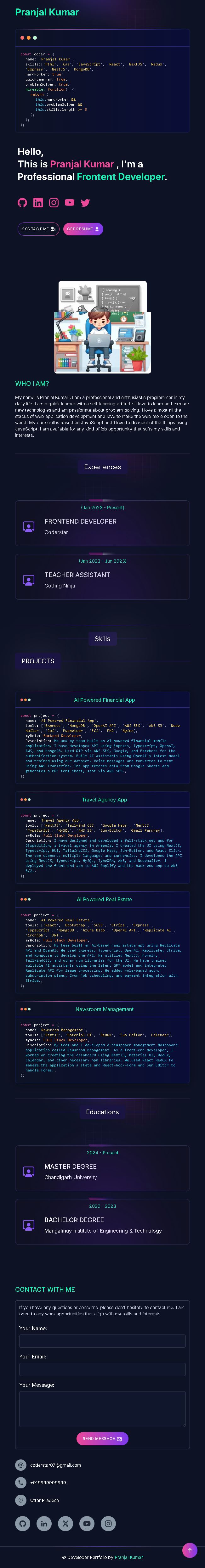 Are you struggling to create a professional portfolio website? Look no further! You can use the Developer Portfolio template and create your very own personalized portfolio today! My website is designed to be user-friendly and easily customizable, making it perfect for both developers and freelancers.