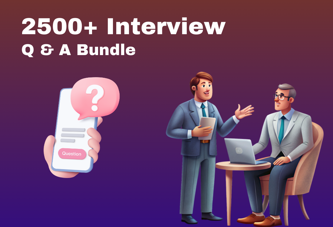The Interview Questions Bundle provides over 2500+ questions and answers across various programming and technical topics.